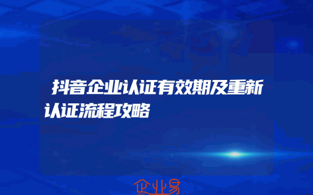 - 抖音企业认证有效期及重新认证流程攻略一、抖音企业认证有效期抖音企业认证的有效期通常为一年。在这一年的时间里,企业的相关信息和认证标识将在抖音平台上展示,有助于提升企业的公信力和用户认可度。企业需在此期间合
