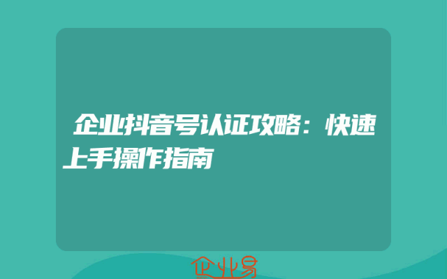 - 企业抖音号认证攻略:快速上手操作指南