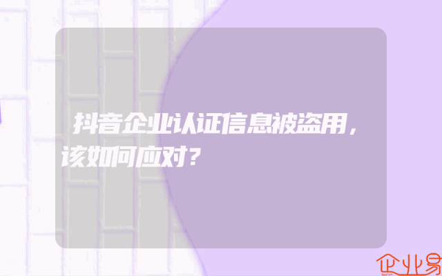 - 抖音企业认证信息被盗用,该如何应对?
