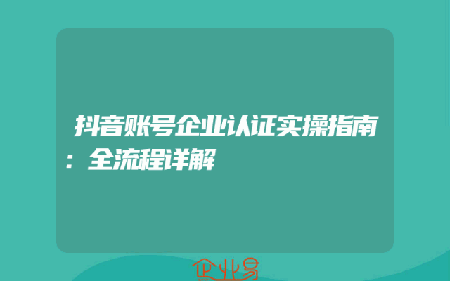 - 抖音账号企业认证实操指南:全流程详解
