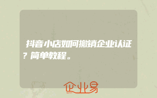 - 抖音小店如何撤销企业认证?简单教程。