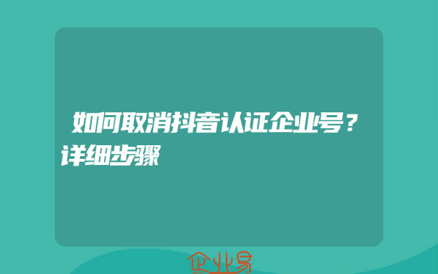 - 如何取消抖音认证企业号?详细步骤