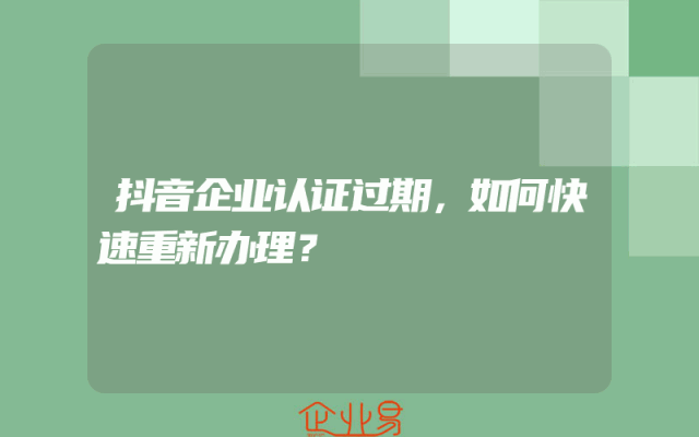 - 抖音企业认证过期,如何快速重新办理?