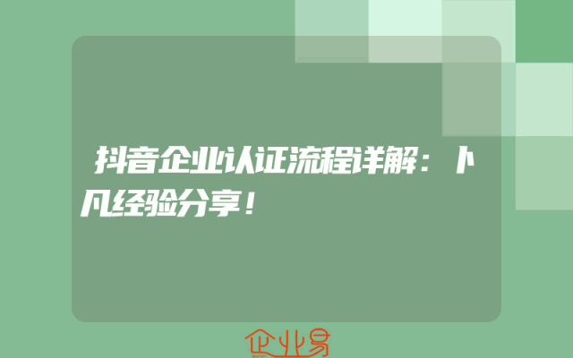 - 抖音企业认证流程详解:卜凡经验分享!