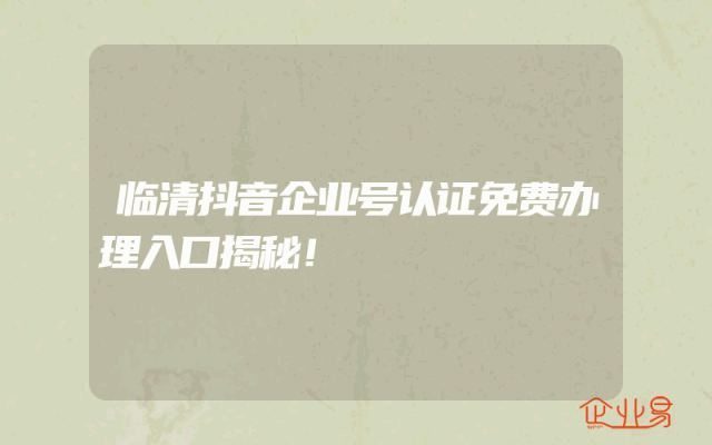 - 临清抖音企业号认证免费办理入口揭秘!
