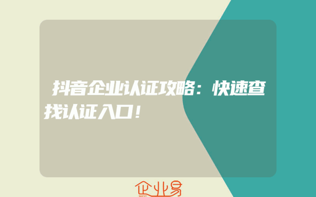 - 抖音企业认证攻略:快速查找认证入口!