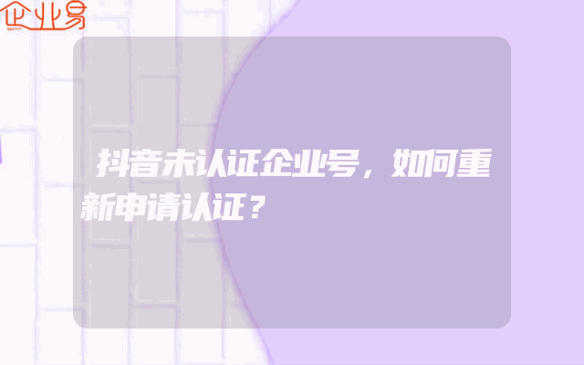 - 抖音未认证企业号,如何重新申请认证?