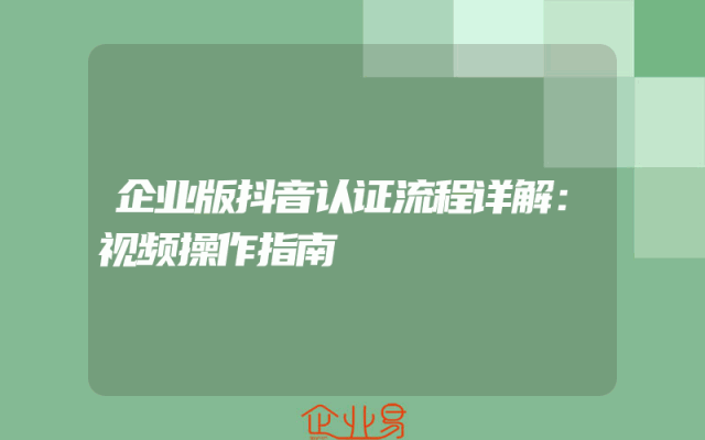 - 企业版抖音认证流程详解:视频操作指南