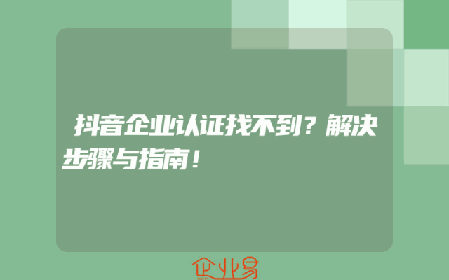 - 抖音企业认证找不到?解决步骤与指南!