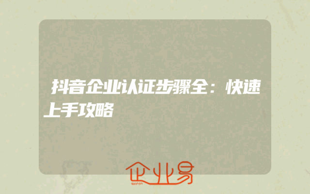 - 抖音企业认证步骤全:快速上手攻略
