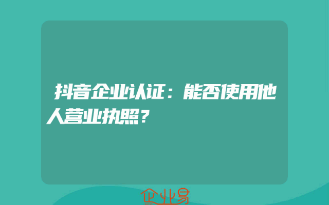 - 抖音企业认证:能否使用他人营业执照?