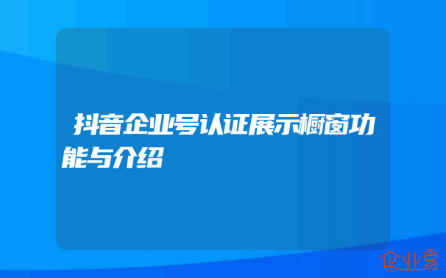 - 抖音企业号认证展示橱窗功能与介绍