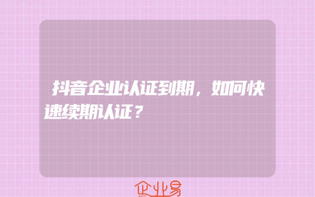 - 抖音企业认证到期,如何快速续期认证?