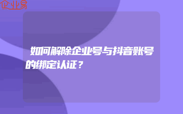 - 如何解除企业号与抖音账号的绑定认证?