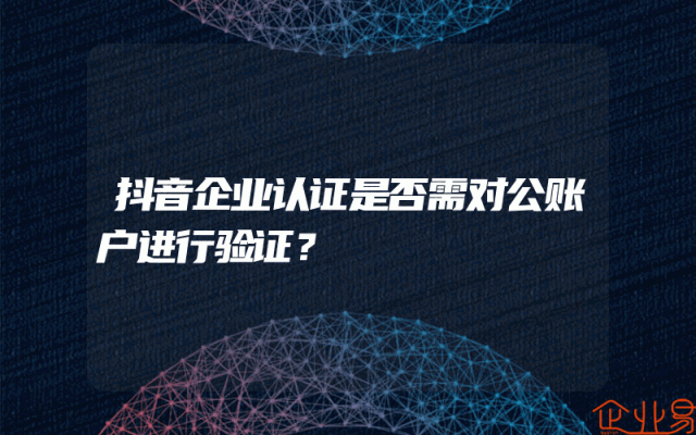 - 抖音企业认证是否需对公账户进行验证?
