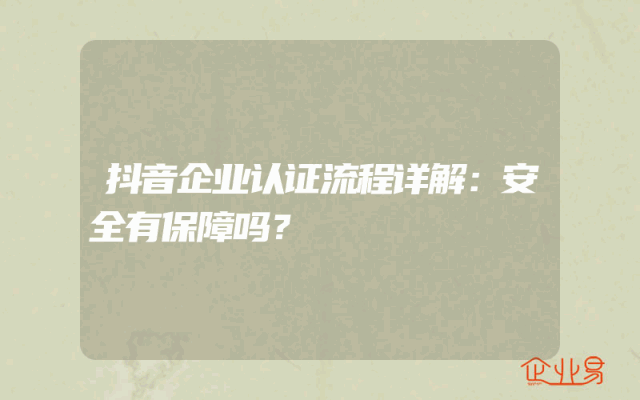 - 抖音企业认证流程详解:安全有保障吗?一、抖音企业认证的重要性在当今数字化时代,社交媒体平台已经成为企业品牌推广和营销的重要渠道。抖音作为一款领先的短视频社交平台,拥有庞大的用户群体,为企业提供了难得的机遇。而进行抖音企业认证,则能帮助企业在