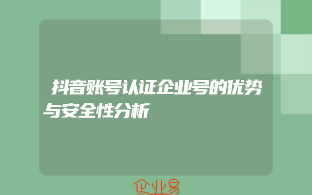 - 抖音账号认证企业号的优势与安全性分析一、抖音账号认证企业号的优势随着互联网的普及和数字化进程的加速,抖音作为一款领先的短视频社交平台,吸引了大量用户的关注。企业纷纷入驻抖音,并通过认证企业号来增强品牌影响力、推广产品和服务。抖音账号认证企业