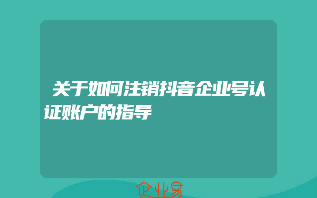 - 如何注销抖音企业号认证账户随着互联网的普及和移动社交媒体的蓬勃发展,抖音等社交媒体平台已经成为了许多企业进行营销、推广的重要场所。但是,在某些情况下,企业可能需要注销抖音企业号认证账户。本文将详细指导您如何注销抖音企业号认证账户,帮助您从多