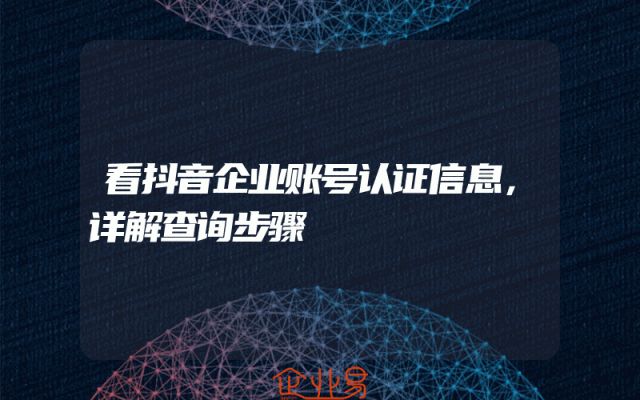 - 抖音企业账号认证信息详解查询步骤一、什么是抖音企业账号认证抖音作为国内领先的短视频社交平台,除了提供普通用户日常娱乐外,还为各大企业提供了展示自身品牌形象和业务推广的平台。为了更好地服务于企业用户,抖音实施了企业账号认证制度。通过认证,企业