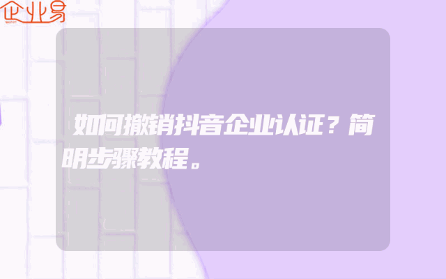 - 如何撤销抖音企业认证?简明步骤教程一、了解撤销企业认证的重要性在企业运营过程中,随着策略调整和业务发展,有时可能需要撤销已在抖音进行的企业认证。撤销企业认证可能是出于多种原因,如业务转型、战略调整或是需要更改认证信息。了解如何正确撤销企业认