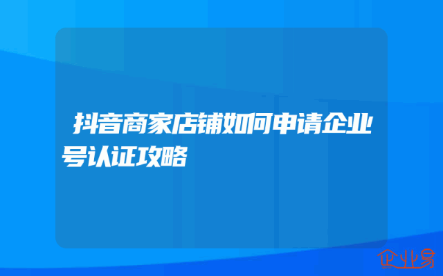 - 抖音商家店铺如何申请企业号认证攻略