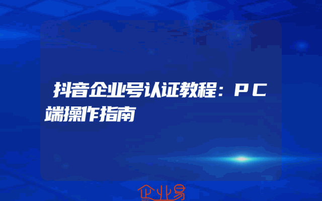 - 抖音企业号认证教程:PC端操作指南