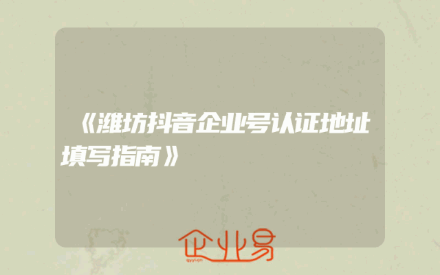 - 潍坊抖音企业号认证地址填写指南一、认证重要性在数字化时代,抖音已成为众多企业的营销高地。为了提升品牌信誉和知名度,企业号认证显得尤为重要。潍坊的企业家们,在注册抖音企业号并准备进行认证时,正确填写认证地址是认证流程中的关键环节。一个准确的地