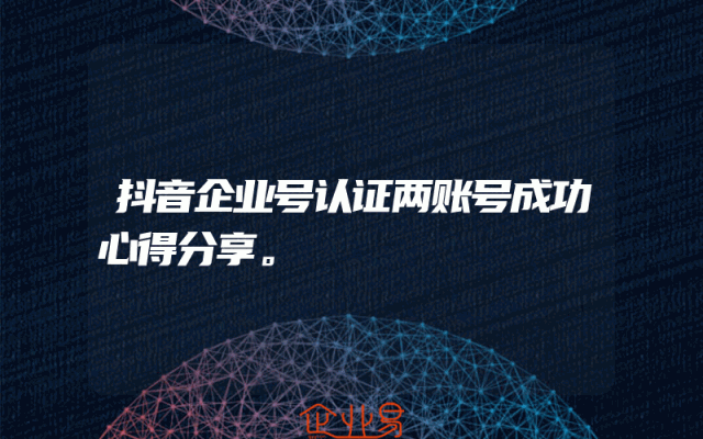 - 抖音企业号认证两账号成功心得分享随着互联网的飞速发展,抖音企业号作为一种新型的营销手段受到了越来越多企业的关注和追捧。通过抖音企业号的认证,企业可以扩大品牌影响力,增加客户黏性,进而促进业务的增长。下面,我将分享我的抖音企业号认证两账号成功