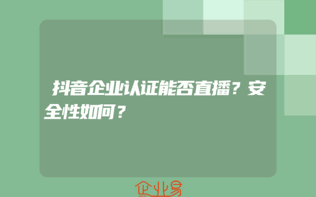 - 抖音企业认证能否直播?安全性如何?一、抖音企业认证概述抖音作为一款热门的短视频社交平台,吸引了众多企业和商家的关注。为了提升企业在抖音平台上的形象与信誉,许多企业选择进行抖音企业认证。通过认证,企业可以获得官方标识,增加用户信任度,并享受到