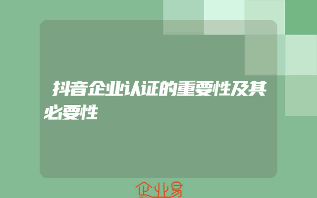 - 如何快速完成抖音企业账户认证流程?一、了解抖音企业账户认证的重要性在当今数字化时代,抖音已经成为许多企业推广品牌和吸引潜在客户的重要平台。拥有企业账户并通过认证,不仅有助于提升品牌信誉,还能增加用户的信任度和黏性。因此,快速完成抖音企业账户