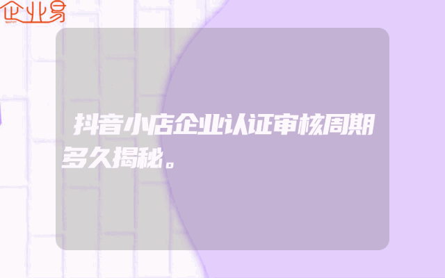 - 抖音小店企业认证审核周期多久揭秘。