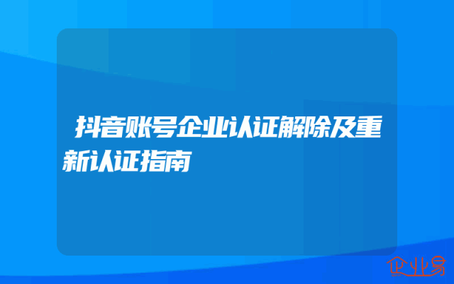 - 抖音账号企业认证解除及重新认证指南