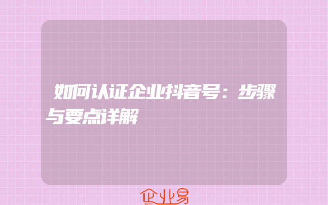 - 如何认证企业抖音号:步骤与要点详解