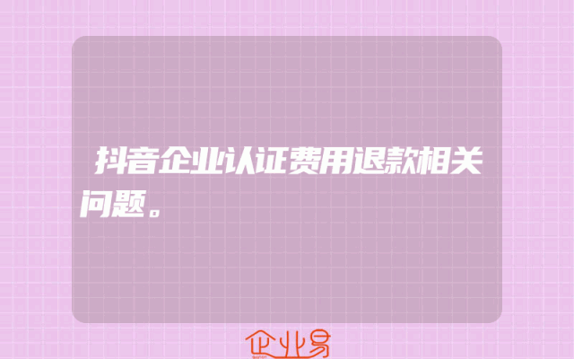 - 抖音企业认证费用退款相关问题。
