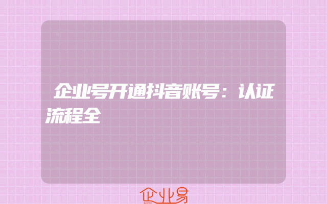 - 企业号开通抖音账号:认证流程全