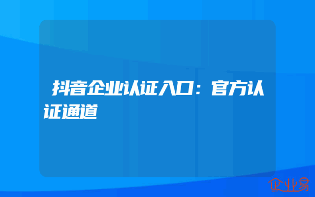 - 抖音企业认证入口:官方认证通道