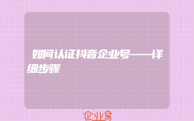 - 如何认证抖音企业号——详细步骤
