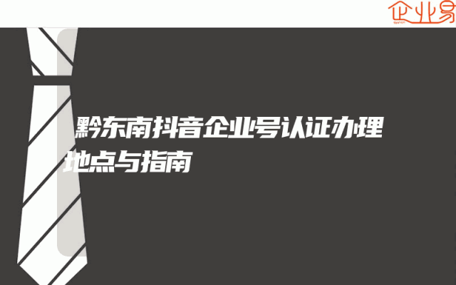- 黔东南抖音企业号认证办理地点与指南