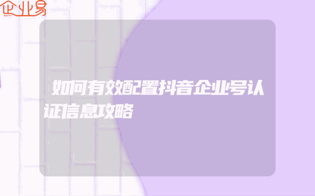 - 抖音企业号认证信息攻略:如何有效配置一、了解抖音企业号认证的重要性在当今数字化时代,抖音已经成为一个拥有巨大流量的社交媒体平台。对于许多企业来说,拥有一个抖音企业号不仅可以帮助提升品牌知名度,还能直接与消费者互动,实现精准营销。而获
