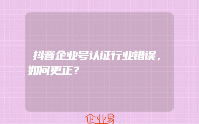 - 抖音企业号认证行业错误如何更正随着抖音平台的快速发展,越来越多的企业选择在抖音开设企业号进行品牌推广和业务运营。但在企业号认证过程中,有时会出现行业认证错误的情况。本文将详细阐述如何面对和解决抖音企业号认