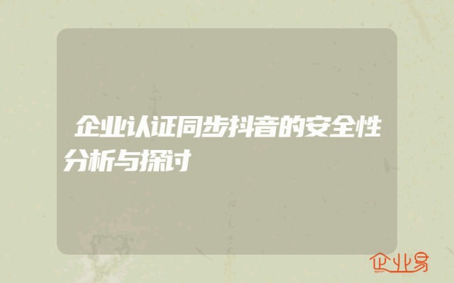 - 企业认证同步抖音的安全性分析与探讨一、企业认证与抖音同步的背景随着互联网技术的快速发展,企业越来越注重数字化营销,而抖音作为一款新兴的社交媒体平台,已经成为众多企业进行品牌推广的重要渠道之一。在这样的背景下,企业认证同步抖音成为了提升品牌知