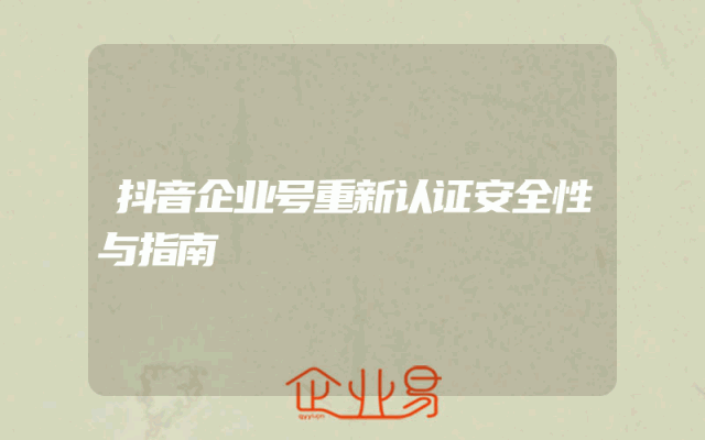 - 抖音企业号重新认证安全性解析与指南一、抖音企业号重新认证的重要性随着抖音平台的快速发展,越来越多的企业选择在抖音开设官方账号进行品牌推广和营销。为了确保企业信息的真实性和安全性,抖音企业号重新认证显得尤为重要。重新认证不仅能验证企业身份的真