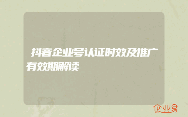 - 抖音企业号认证时效及推广有效期解读