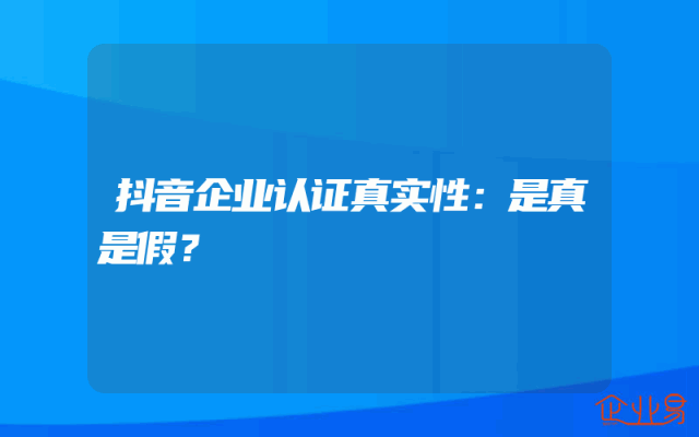 - 抖音企业认证真实性解析:是真是假?一、抖音企业认证概述随着互联网的普及和社交媒体的兴起,抖音作为一款短视频社交平台,吸引了众多企业的目光。为了在抖音上拓展业务,许多企业选择进行认证,以提升自身的公信力和知名度。抖音企业认证不仅有助于企业建立