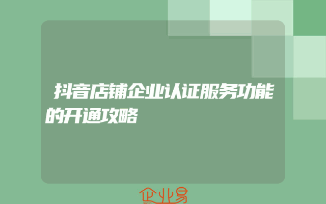 - 抖音店铺企业认证服务功能的开通攻略一、了解抖音店铺企业认证的重要性随着移动互联网的普及,抖音已经成为众多企业开展营销、推广的重要平台。通过抖音店铺企业认证,企业可以获取更多的信任背书,提升品牌影响力,扩大用户群体,增加销售机会。因此,了解抖