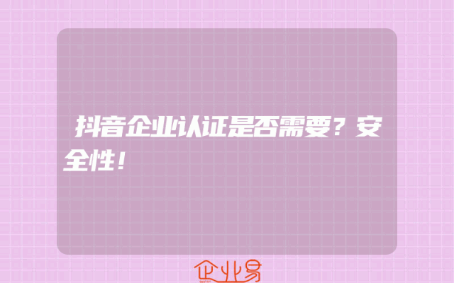 - 抖音企业认证是否需要?安全性解析!一、抖音企业认证的重要性在当今数字化时代,抖音作为一款领先的短视频社交平台,吸引了大量用户的关注。对于企业而言,抖音不仅是一个宣传和推广产品的平台,更是一个建立品牌形象、增强品牌影响力的重要渠道。因此,进行
