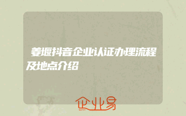 - 姜堰抖音企业认证办理流程及地点介绍一、抖音企业认证概述随着互联网的快速发展,抖音已经成为国内最受欢迎的短视频平台之一。在姜堰地区,越来越多的企业开始意识到抖音平台的重要性,纷纷寻求在抖音上进行品牌推广和营销。而要进行抖音营销,首先需要进行企