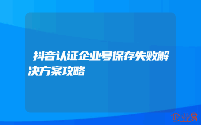 - 抖音认证企业号保存失败解决方案攻略一、问题概述在抖音平台上申请认证企业号时,有时会遇到保存失败的问题,这让许多企业用户感到困扰。面对这样的问题,我们需要先了解可能的原因,再寻找相应的解决方案。二、检查资料完整性在申请认证过程中,确保所提交的
