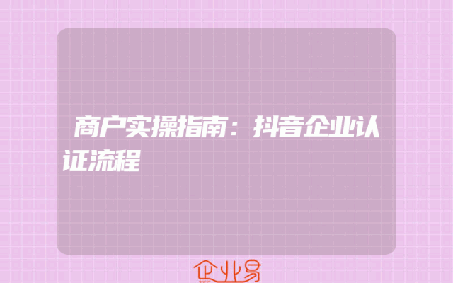 - 商户实操指南:抖音企业认证流程详解一、了解抖音企业认证的重要性在当今数字化时代,抖音已成为众多企业竞相追逐的热门平台。为了更好地在抖音上展示企业形象、推广产品和服务,获取更多潜在客户的关注和信任,进行抖音企业认证显得尤为重要。本文将详细介绍