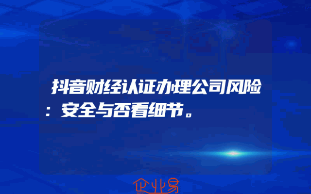 - 抖音财经认证办理公司风险:安全与否看细节。